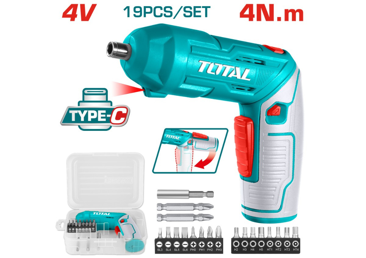Аккумуляторная отвертка 4 В/4 Нм/USB Type-C TOTAL TSDLI0442